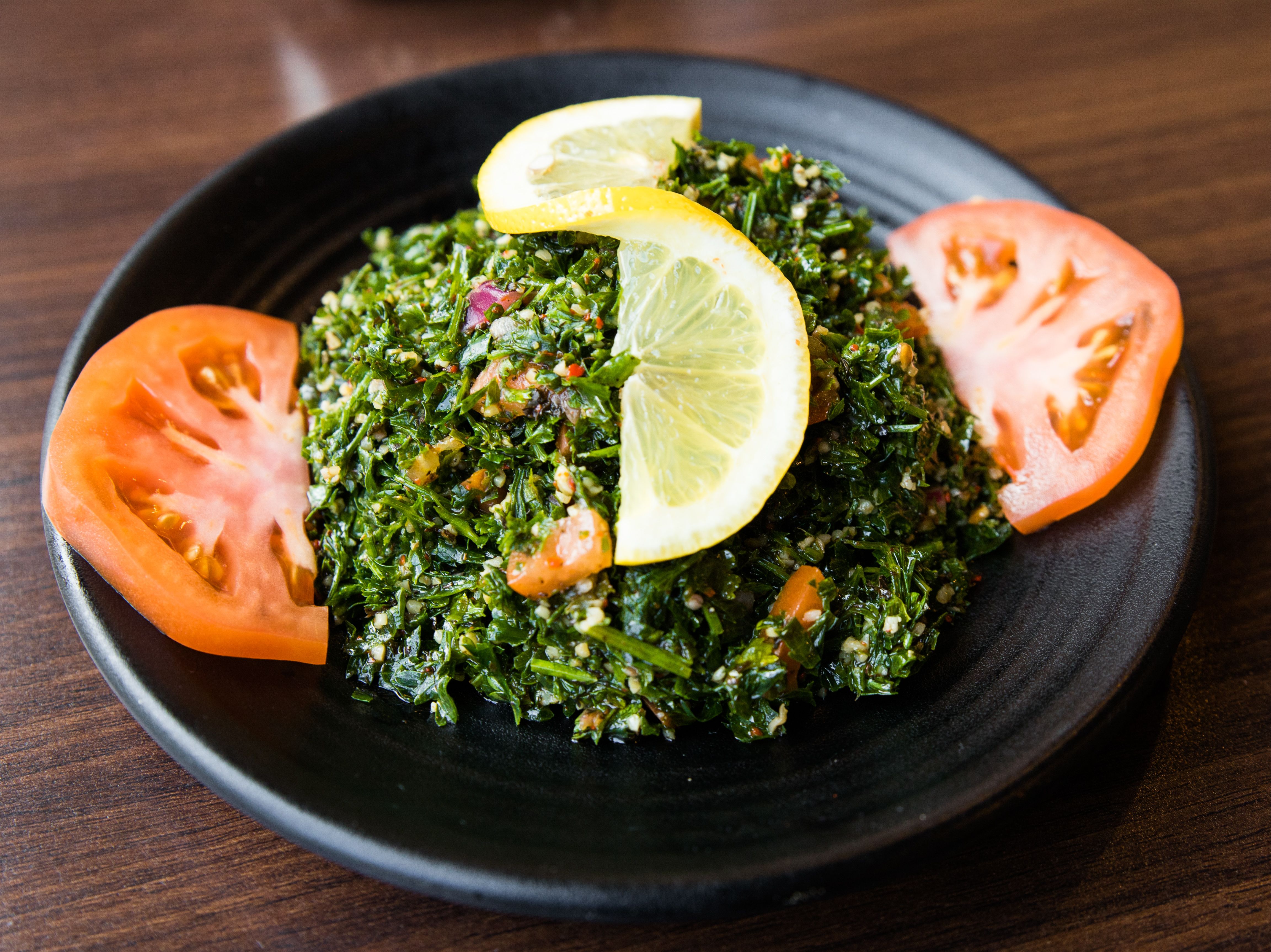 A delightful combination of bulgur wheat, parsley, red onion, tomatoes, lemon juice & mint.
