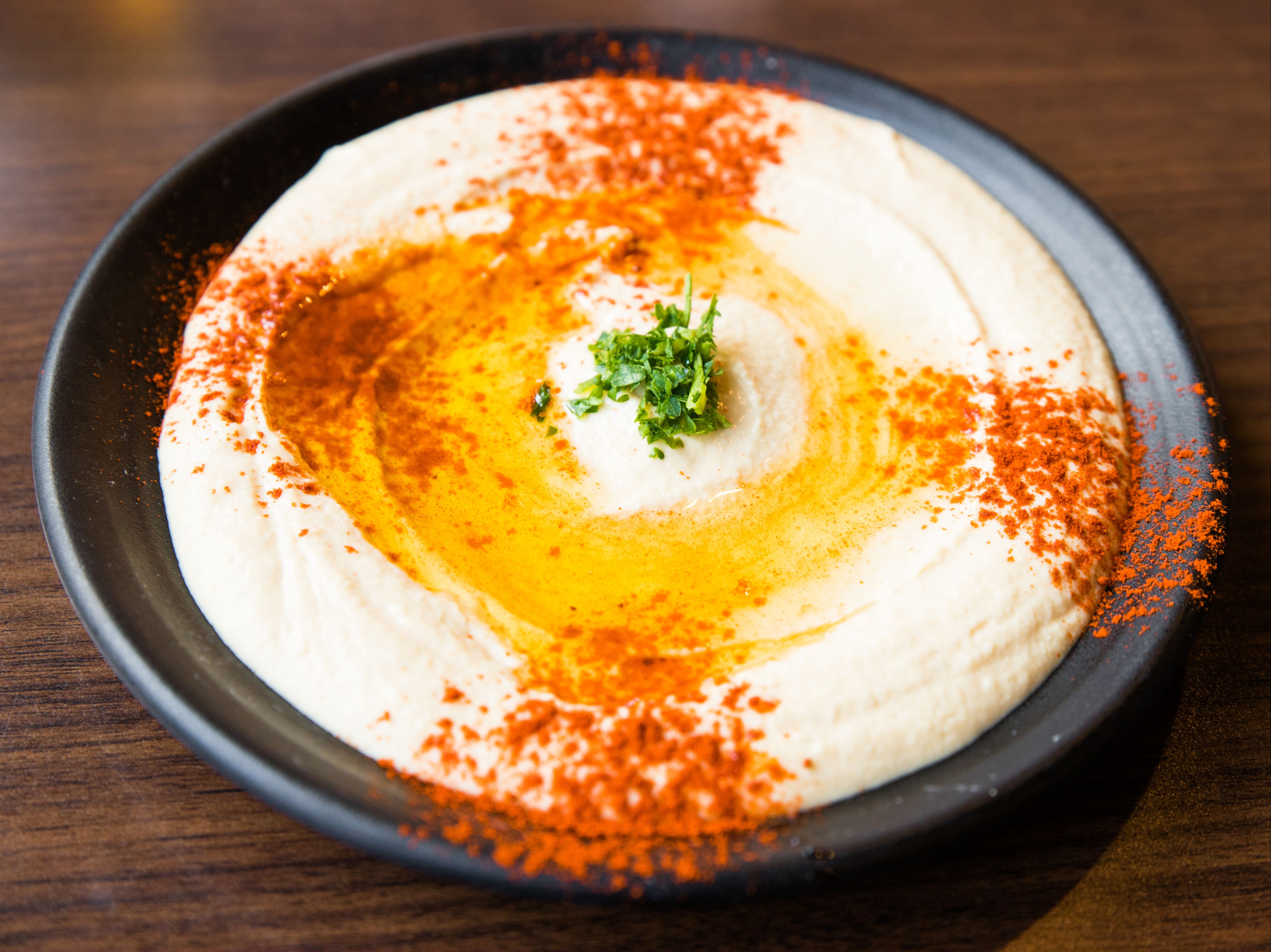 A smooth and creamy blend of chickpeas, tahini, fresh lemon juice & garlic with a drizzle of olive oil.
